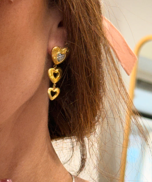 3 hearts long earrings